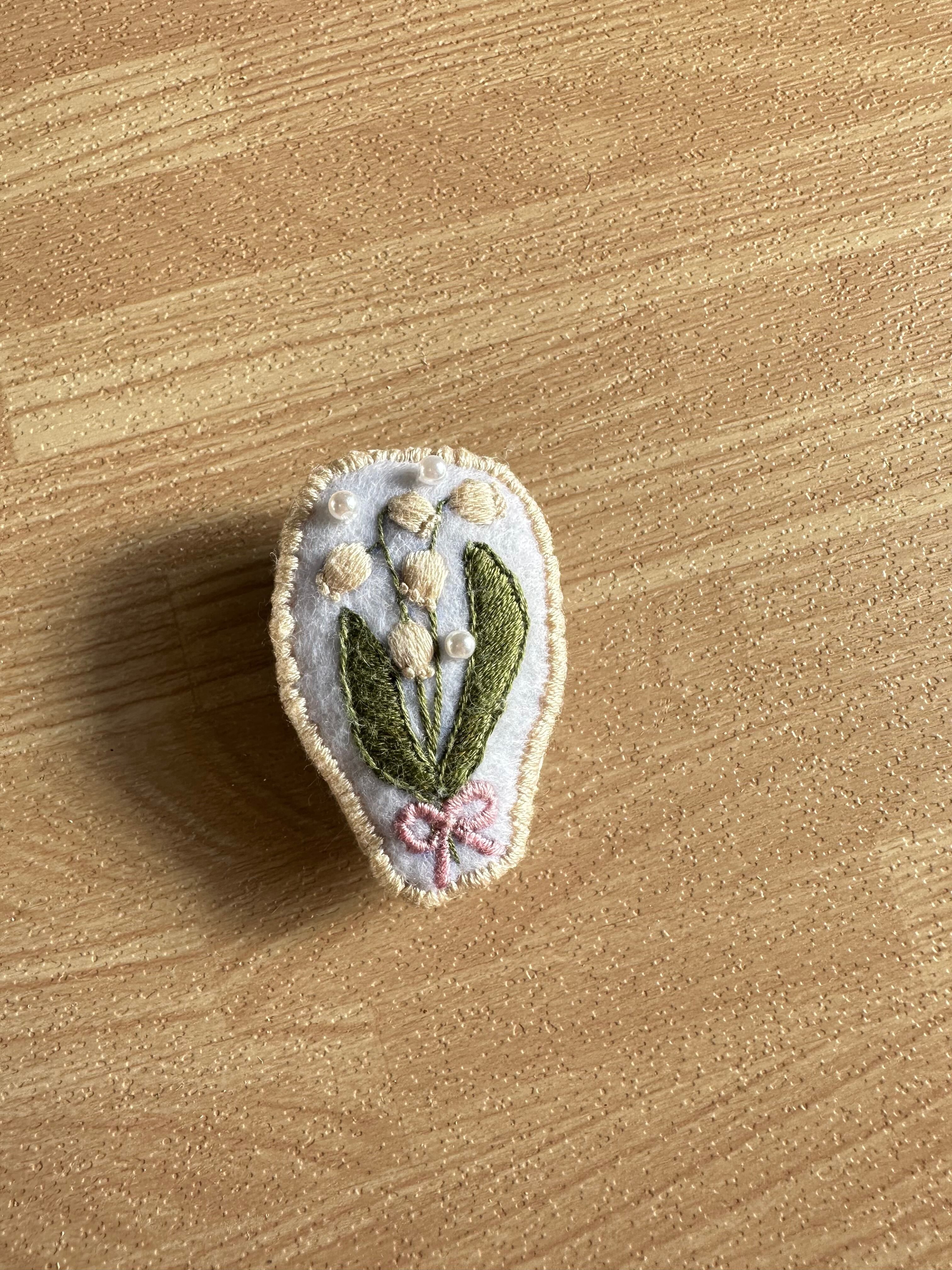 手刺繍すずらんブローチ(小サイズ)