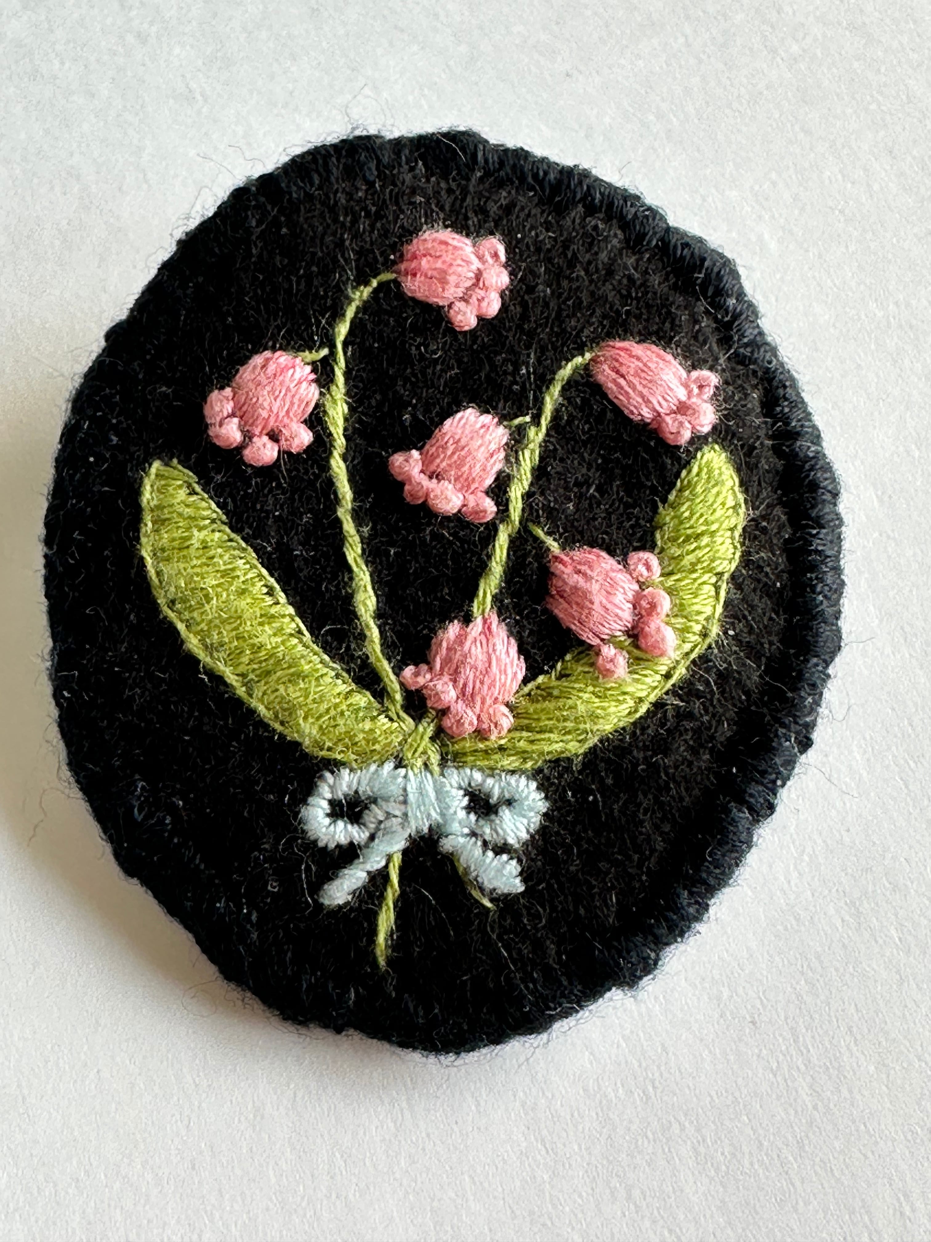 黒いフェルトに刺繍することで、甘すぎず、