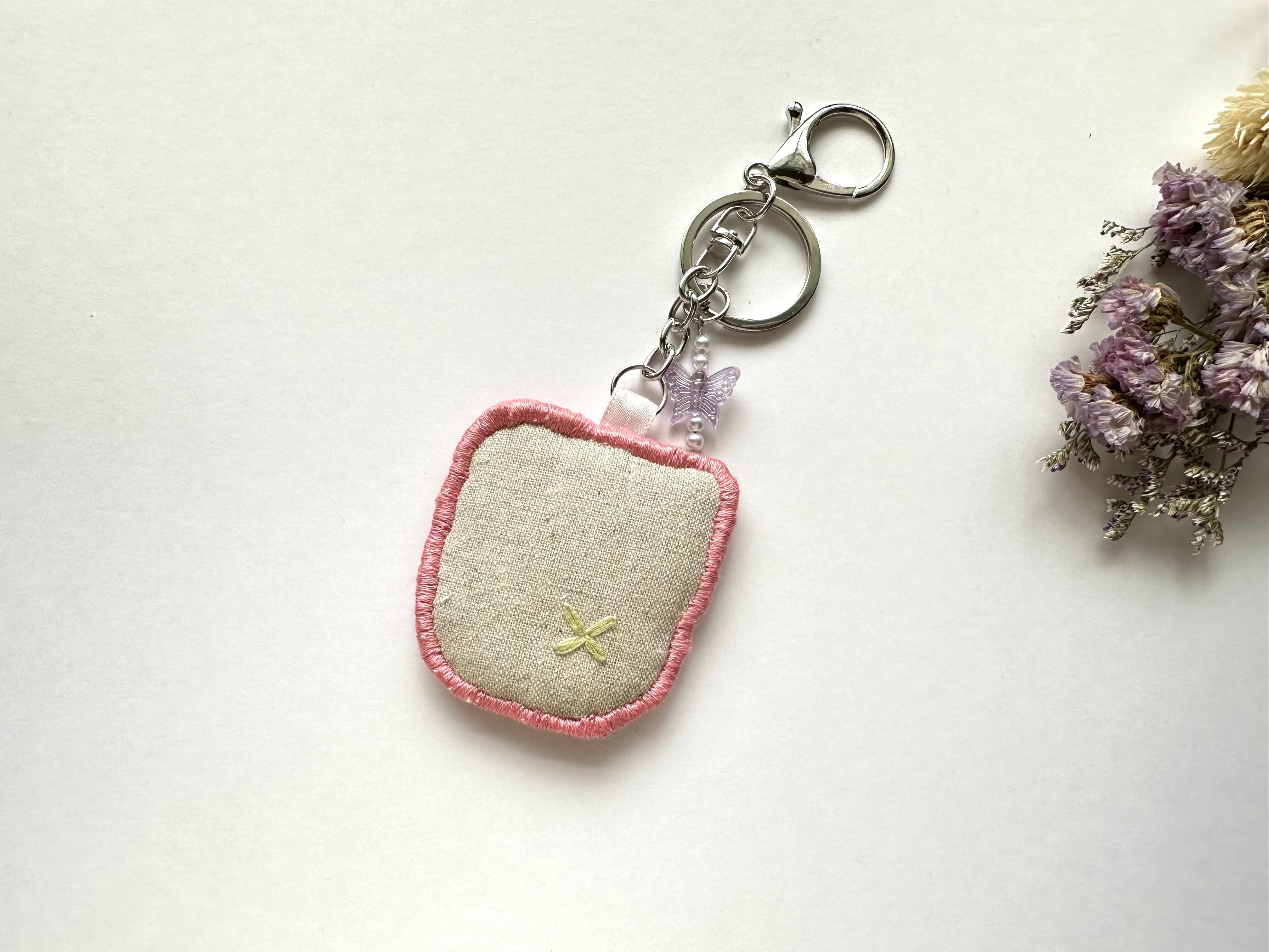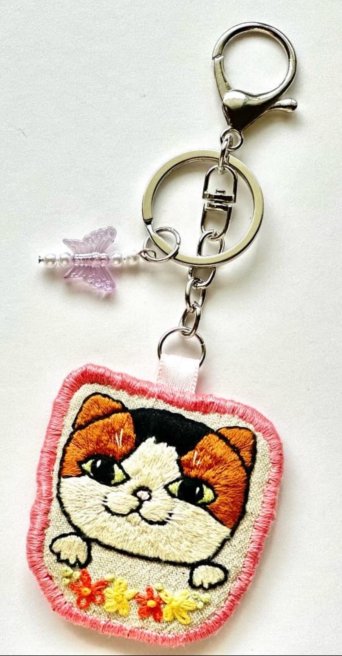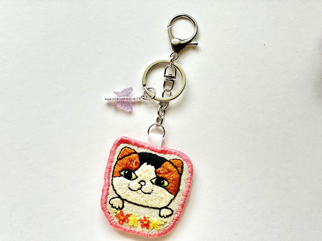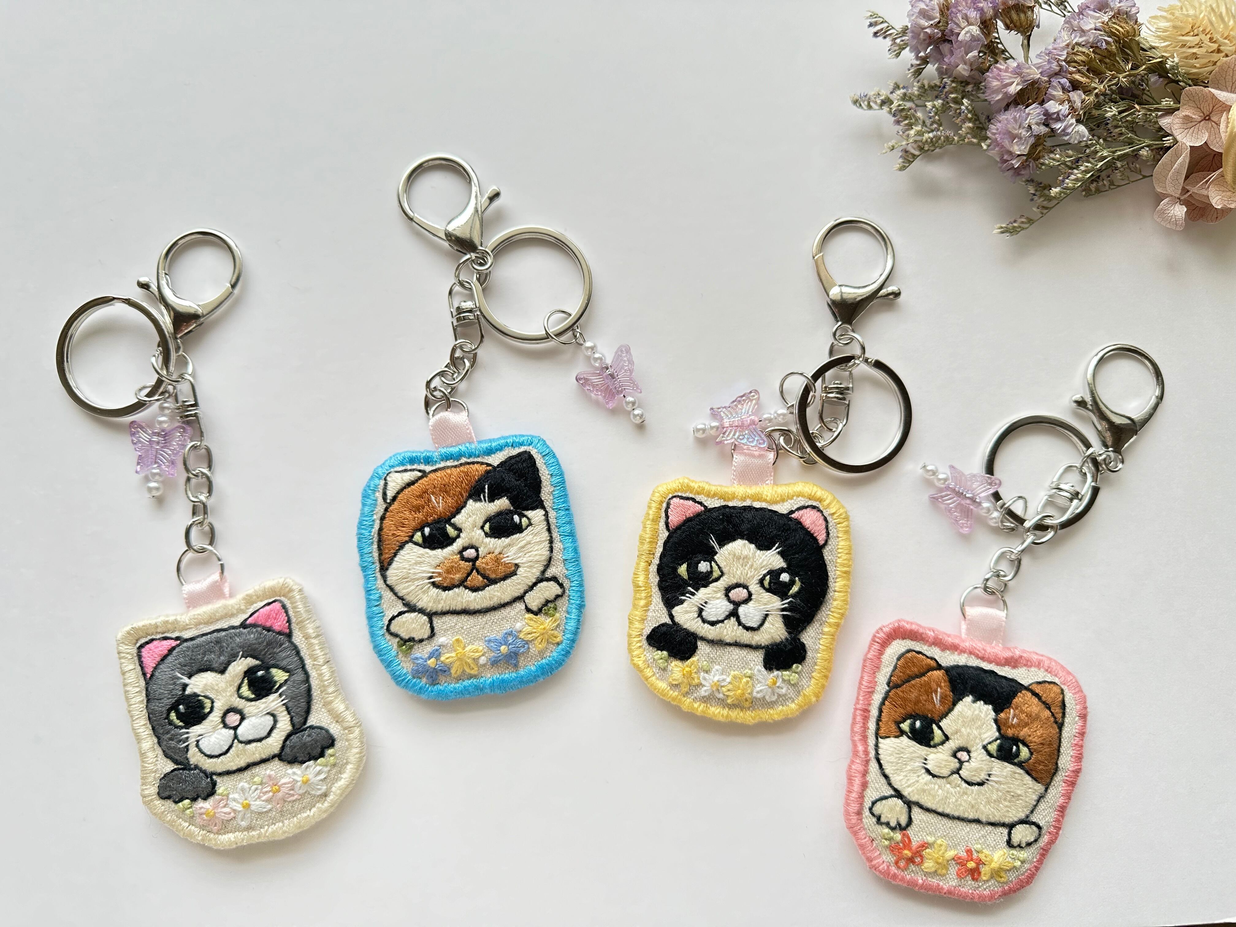 猫モチーフの手刺繍キーホルダーです。